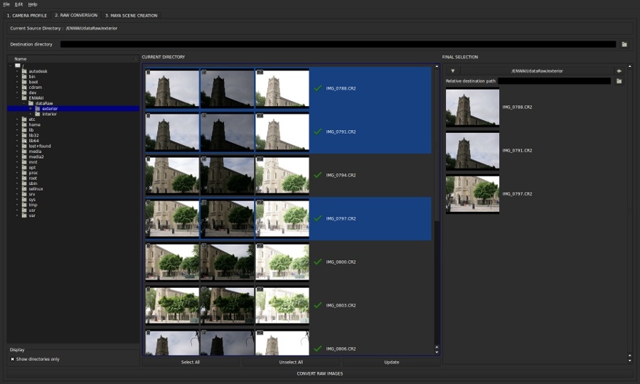 Enwaii is a complete photogrammetry pipeline developed to work smoothly in a VFX studio. It fills the gaps between and inside the classic tools and improves productivity and quality for props and environments reconstruction jobs which are two daily tasks in VFX.